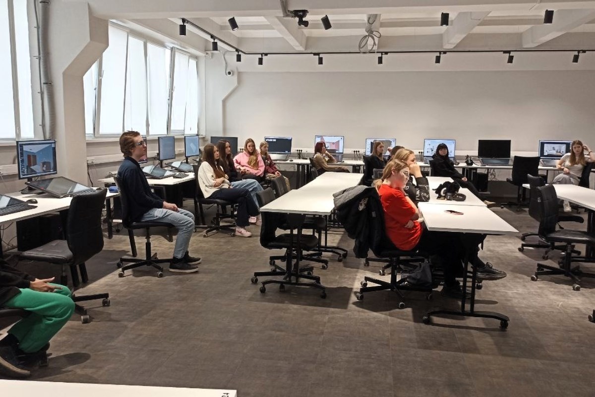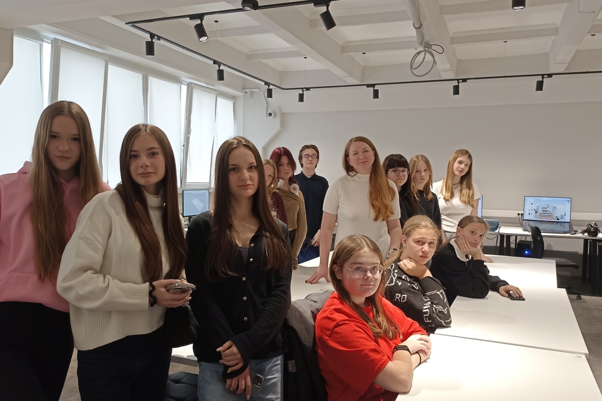 На кафедре «Средовой и графический дизайн» 1 ноября тепло принимали старшеклассников, увлекающихся дизайном, в рамках Каникулярной школы. Ребят познакомили с учебным пространством корпусов, техническим и программным оснащением.
