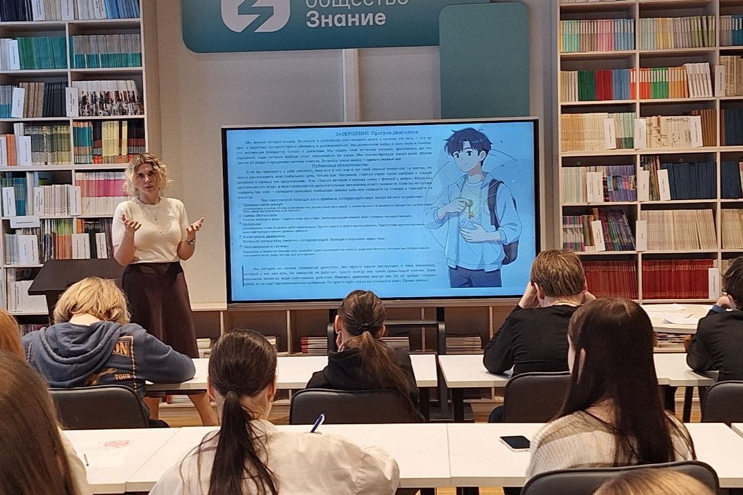 Кандидат психологических наук Елена Маннанова провела для старшеклассников встречу «Двигатель Внутри: от "надо" к "хочу"». Ученики разобрали нейропсихологические механизмы мотивации и научились отличать внутренние цели от навязанных обществом шаблонов.