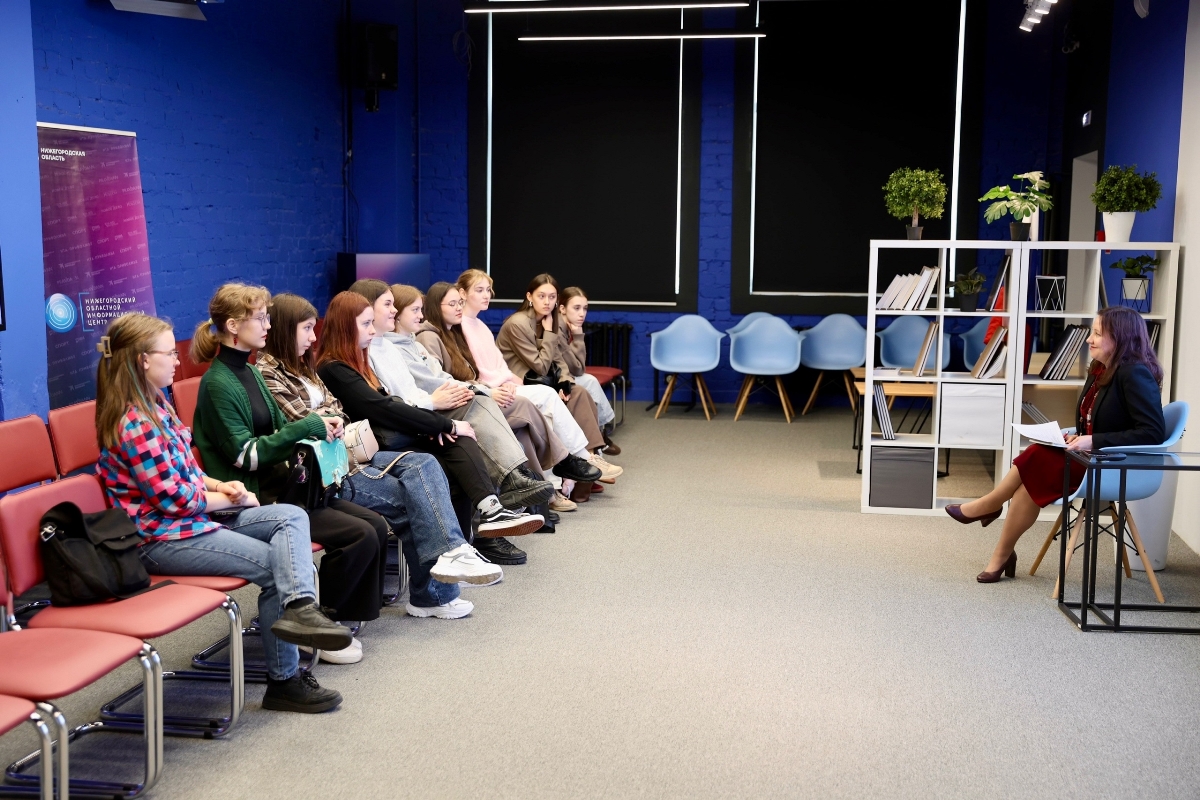 На медиаплощадке в этот день со студентами работала Ольга Сизова, заведующий кафедрой продюсерства и музыкального образования Мининского университета.