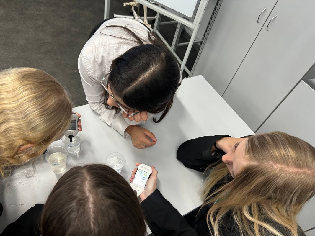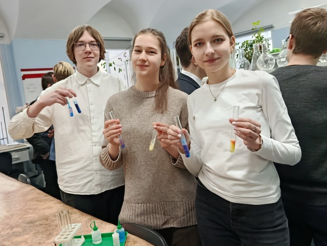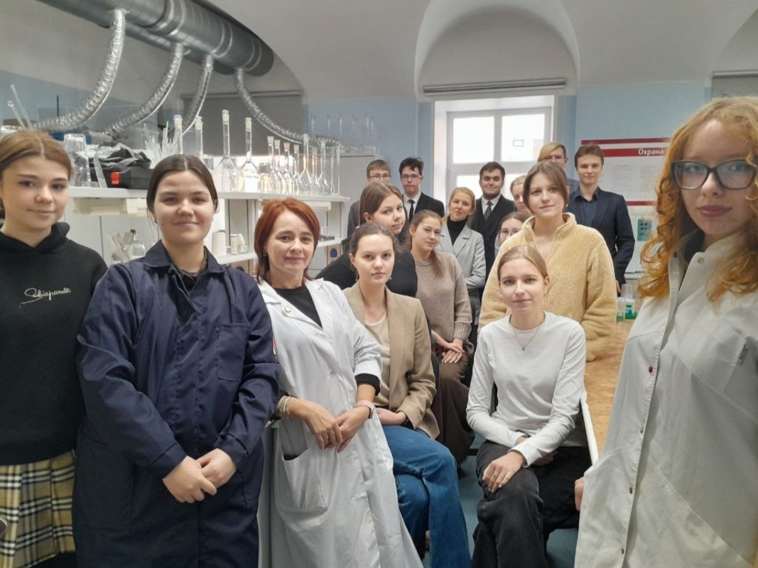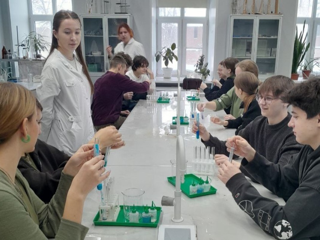 3 февраля лаборатории химико-технологический факультета посетили учащиеся 11 классов лицея №8 и гимназии №13 Нижнего Новгорода. «Биохимический практикум» для них провели кандидат химических наук Марина Дыдыкина и кандидат педагогических наук Ирина Новик, а также студенты группы БХ-22-1 — Полина Потапова, Полина Сейфетдинова, Евгения Захарова и Елизавета Волкова.