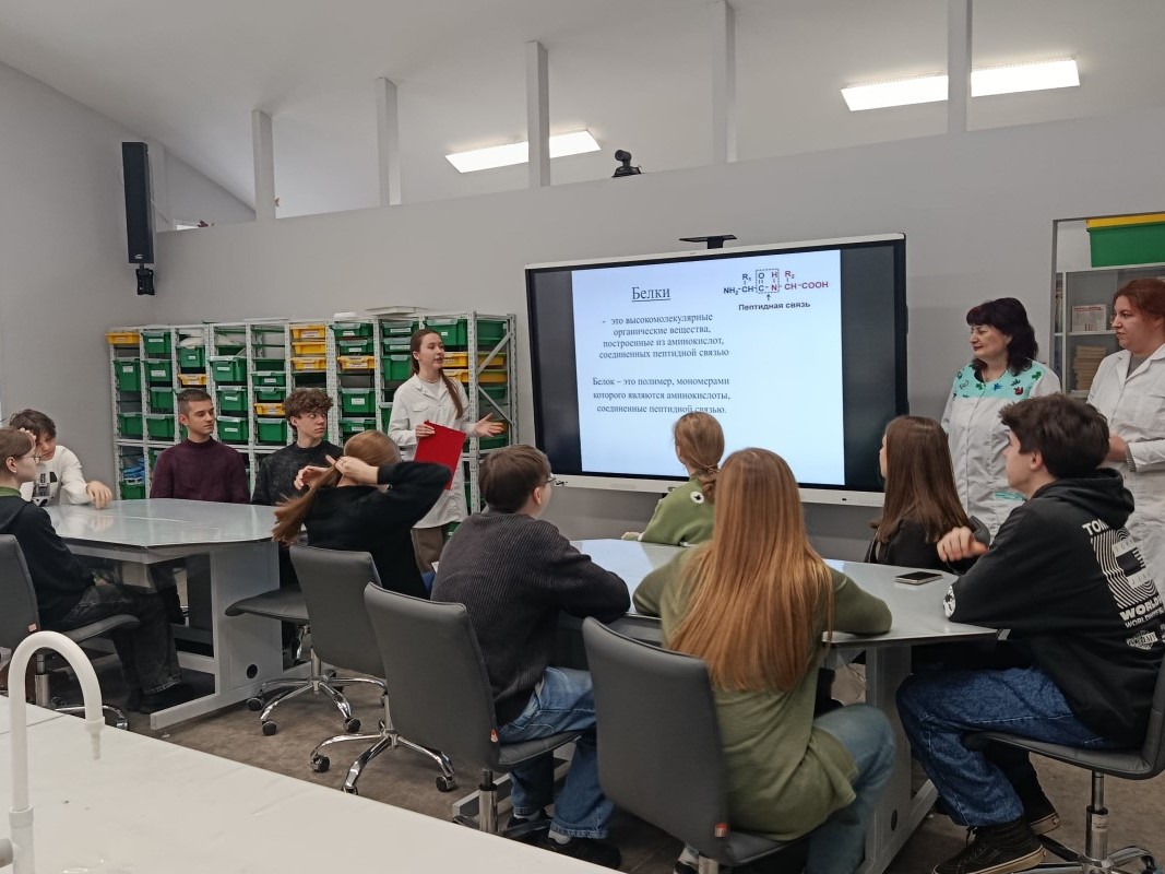 «Школьники провели химические эксперименты, демонстрирующие качественные реакции на белки. Сделали анализ продуктов, содержащих белки: яиц, молока, творога и йогурта. Ребятам очень понравилась эта серия опытов. Кафедра химического материаловедения активно сотрудничает с учителями этих классов», — отмечают преподаватели вуза.