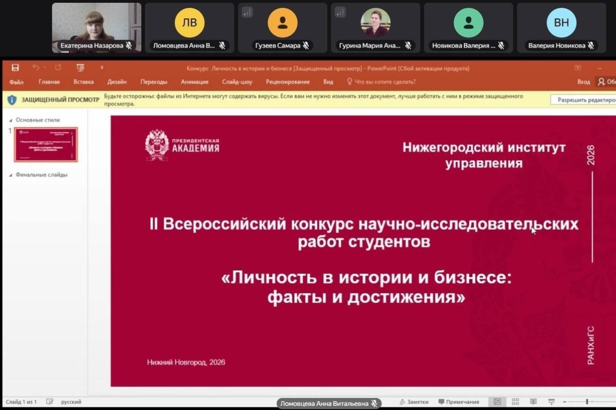 НИУ Президентской академии подвел итоги II Всероссийского конкурса научно-исследовательских работ студентов «Личность в истории и бизнесе: факты и достижения». Цель конкурса — повышение уровня научных знаний студентов высших учебных заведений и развитие студенческой научно-исследовательской деятельности.