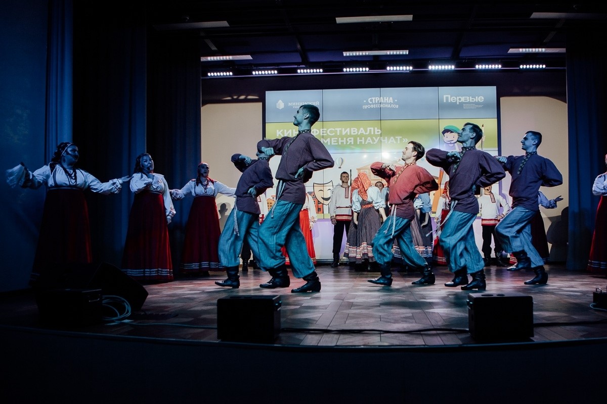 Кинофестиваль открывало яркое шоу: для 150 школьников в зрительном зале выступили вокальные, хореографические и театральные студии вуза. Организатором масштабного события, стартовавшего на большой сцене Мининского университета, выступил факультет дизайна, изящных искусств и медиатехнологий — кафедра продюсерства и музыкального образования.