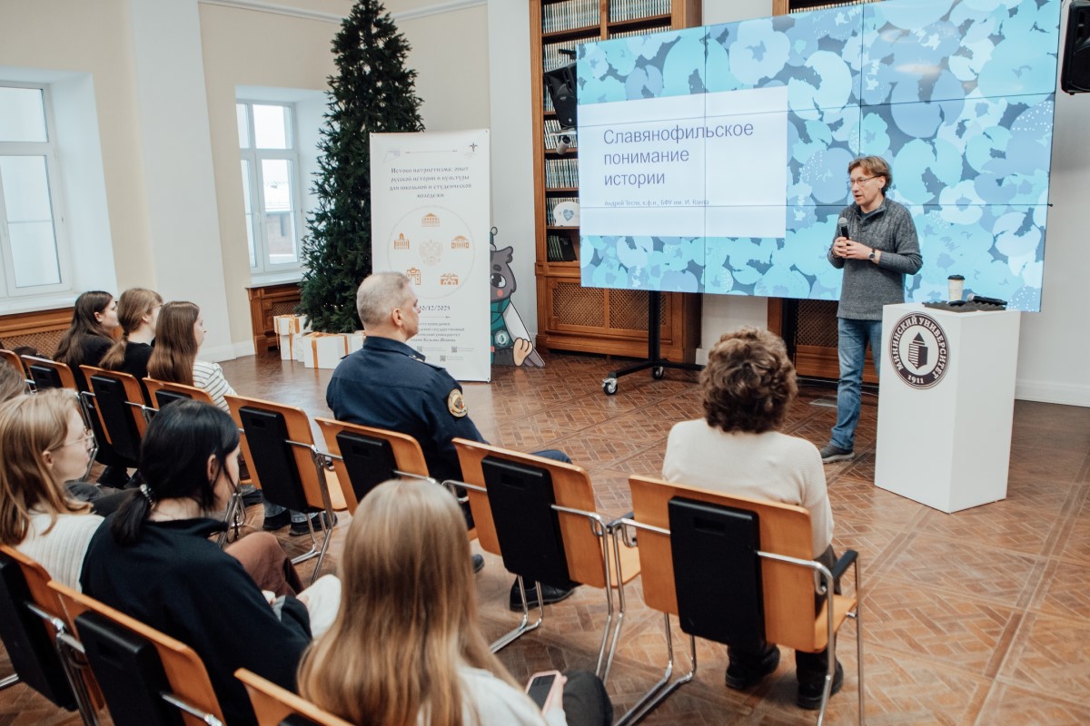 9 декабря в Мининском университете состоялась презентация национального образовательного проекта «Истоки патриотизма: опыт русской истории и культуры для школьной и студенческой молодежи». Лекторий в рамках проекта провел один из его экспертов и автор курса «Русская история: истоки и многообразие патриотизма» — научный руководитель Центра исследований русской мысли БФУ им. И. Канта, кандидат философских наук Андрей Тесля.