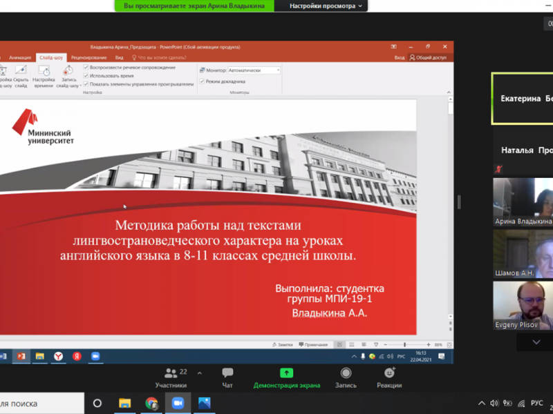 С 21 по 23 апреля 2021 года преподаватели кафедры иноязычной профессиональной коммуникации приняли участие в конференции «Язык, культура, менталитет: проблемы изучения в иностранной аудитории».